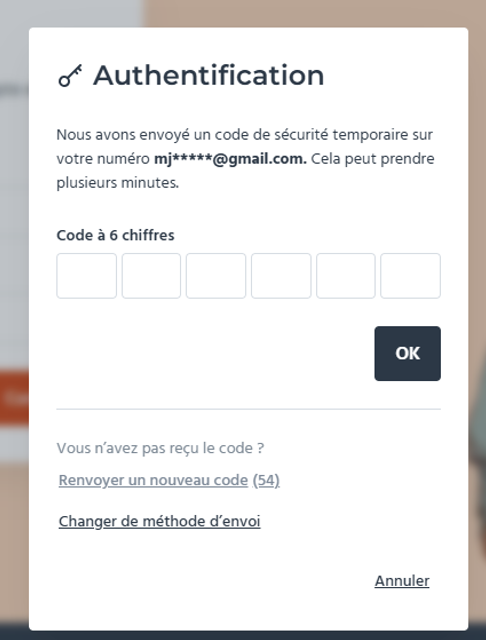 4. Renseignez le code de sécurité à 6 chiffres et cliquez sur OK. Il a une durée de validité limitée à 10 minutes.