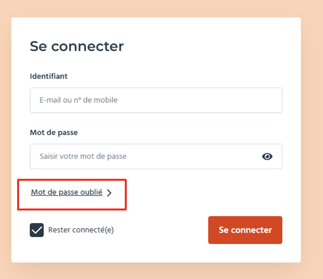 1. En cas de perte ou d'oubli de votre mot de passe, vous avez toujours la possibilité de le réinitialiser depuis votre espace client en cliquant sur Mot de passe oublié.